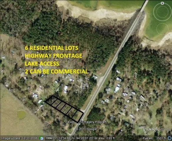 This is the spot you been looking for. Located in sight of the highway 147 bridge these lots have both county and highway frontage. Back of property borders a beautiful creek and is wooded with huge trees. The front two lots are commercial/residential so perfect if you wanted to have a lake business. Owner financing is possible and sellers are TX brokers/realtors.
