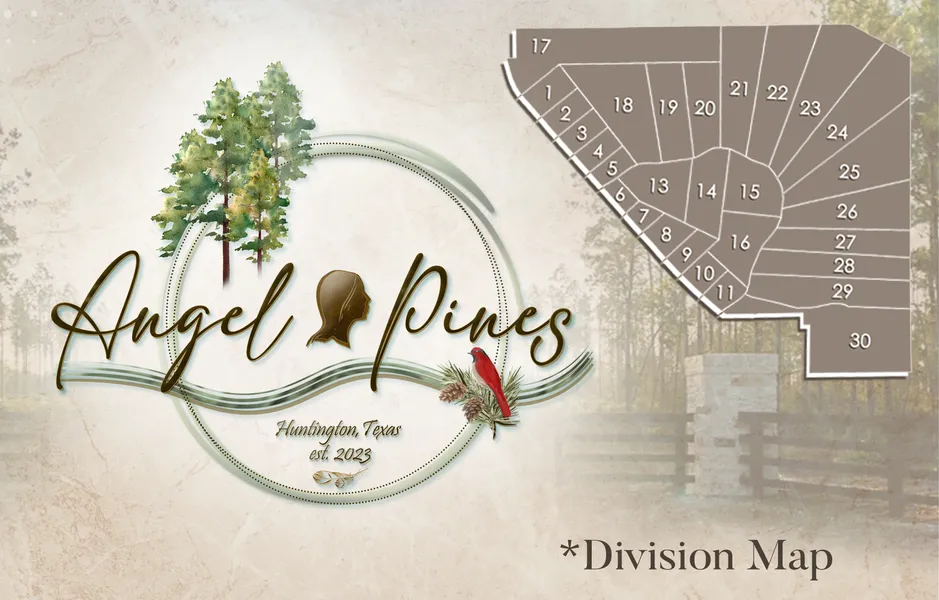 Angel Pines, a new subdivision located in the charming town of Huntington, TX. Nestled amongst towering pine trees, this peaceful property offers the perfect balance of privacy and convenience. With large lots ranging from 2 to 27 acres, Angel Pines provides amble space for homeowners to build their dream home and create a peaceful sanctuary for their family. Imagine waking up to the sound of birds chirping and the rustling of leaves, and ending your day watching the sunset dip behind the pines. At Angel Pines, youll have the freedom to build the home that suits your unique style and needs. Whether you envision a cozy cabin, a sprawling ranch-style house, or a modern retreat, the possibilities are endless. Privacy is a top priority at Angel Pines. The community is situated far from the hustle and bustle of the city, ensuring a peaceful and secluded environment. Come and experience the serenity of Angel Pines, and build the home of your dreams.