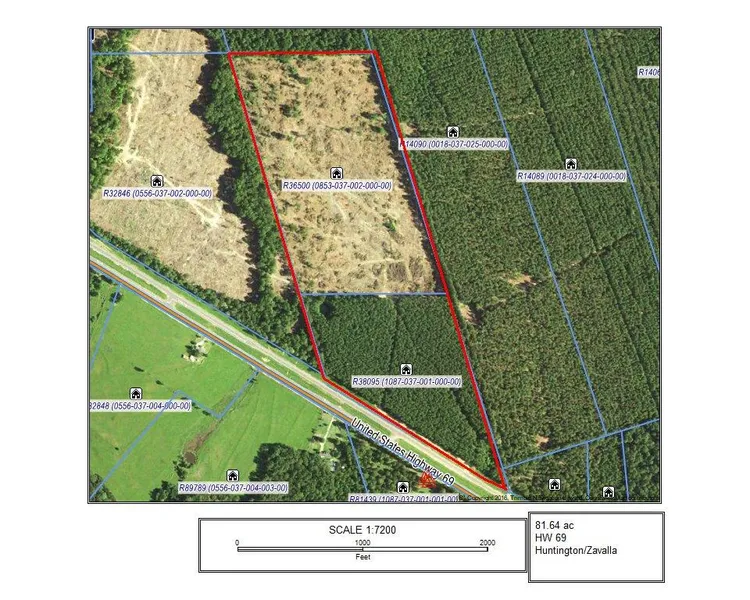 Research Parcel InformationFrom Lufkin take HW 69 SE to Huntington, From stop light in Huntington continue S E on US HW 69. Go 8 miles, tract is on the North Side of HW 69.