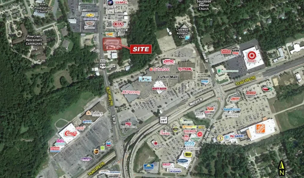 Great opportunity to own a high-visibility commercial lot just minutes from Downtown Lufkin, next to the Lufkin Mall, positioned along busy South First Street with strong daily traffic (roughly 30,000 a day) and excellent frontage. This cleared 1.15-acre parcel offers flexible development potential for retail, office, medical, restaurant, or service uses, giving investors and business owners a blank canvas in a fast-growing East Texas market. With easy access, strong nearby commercial activity, and prime exposure along one of Lufkin’s main corridors, this property is ideal for anyone looking to build a flagship location near the heart of the city.