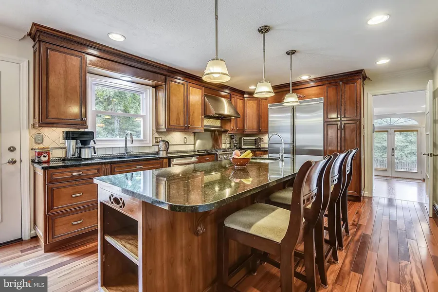 Live, work and play from this handsome 5-6 bedroom 3.5 bath home tucked away at the end of a tree lined street. Seasoned and novice chefs alike will delight in custom finishes, like the 48" Liebherr refrigerator, 36" 6-burner gas stove with warming shelf, pot filler, and additional prep sink located in the expansive island. Entertain in front of your wood burning fireplace with plenty of room to play the baby grand. Enormous deck with thoughtful solar lighting, all the better to watch the dogs play in your fully fenced yard. Working from home without distraction is no issue here, large light filled office with private entrance and half bath are all on the first level. Upstairs, you'll find a lovely primary bedroom retreat with classic finishes and jacuzzi tub, plenty of bedrooms for the family, as well as a library/study (or bdrm) and well-lit updated full bath. The basement, abound with...