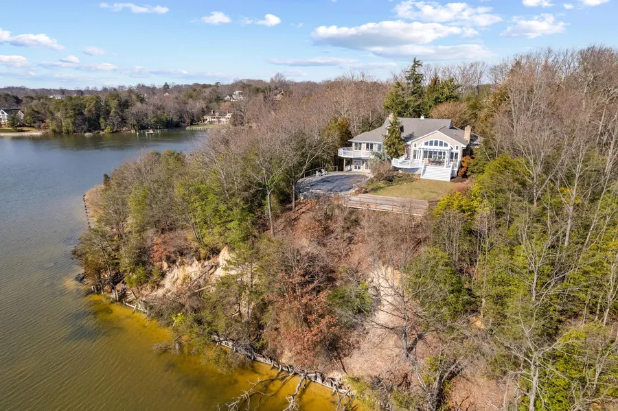 Indulge in the serenity of an extraordinary waterfront retreat on the shores of the majestic Severn River. A rare find just minutes from the heart of Severna Park, this sprawling 7-acre estate with 1600 feet of prime waterfrontage offers an unparalleled sanctuary, graced with endless vistas of the Severn River and the meandering beauty of Forked Creek. Elevate your lifestyle within the confines of a grand three-level residence, boasting a thoughtful layout that seamlessly captures views of the water and surrounding nature from every room. With 4 bedrooms on the main level, including a spacious waterfront primary suite, there is plenty of room for everyone, while the finished basement with additional full bath provides endless possibilities. The grand Living Room with soaring ceilings, stone fireplace and walls of windows perfectly captures the extensive views of Round Bay, the Severn River and beyond. The continuation of the water views from the Primary suite and the wrap around deck overlooking the pool and grounds provides tranquility at the end of the day. The well-appointed ensuite is complete with a water-view tub, allowing you to unwind in luxurious comfort. Destined to become a true legacy property, the elevated acreage is secluded amidst mature greenery and located on a point of land. The outdoor space is transformed into a haven of leisure with multiple decks and heated waterfront swimming pool, offering a captivating setting for both relaxation and entertainment. This is more than a residence; it is the embodiment of waterfront living along the Severn River's edge. Your private escape to a world enveloped by water and nature, and where each day is a celebration of panoramic beauty. Welcome Home!