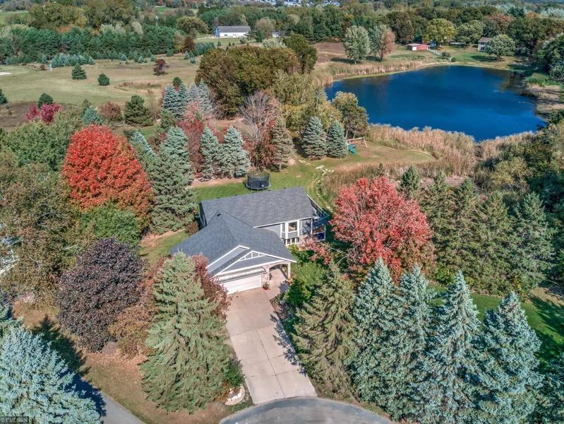 Cul-de-Sac Living & Almost 2 Acres of Privacy! This Adorable Home Offers Beautiful Hardwood Floors, Massive Gourmet Kitchen with a Wall of Windows, Stainless Steel Appliances, Granite Counters, Wine Fridge & Breakfast Bar. Two Deck Areas, Fire Pit Area, Hen House, Picnic Table Area, Shed, Apple Trees and a Ton of Privacy! (even the yard backs up to a small private golf course!) Floor to Ceiling Brick Fireplace, Lower Level Walk Out, Brand New LL Bathroom, Heated Garage, Dual Heat Zone, New Roof 2019, New Bay Window 2019, New Septic 2016. Huge Upper Deck Overlooks 2 Ponds, the Larger Pond has been used as an Ice Skating Rink. Centennial School District! Great Opportunity for Fun Living & Privacy, yet easy access to the Twin Cities! Watch the virtual tours!