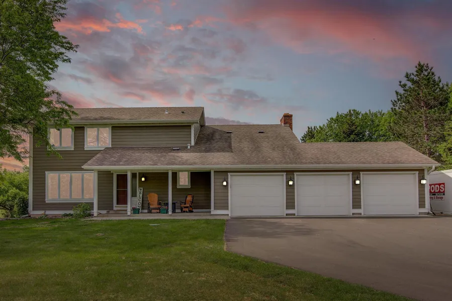 Beautiful 2-story in highly sought after Andover schools. Enjoy morning coffee on the covered front patio. Large kitchen w/custom Oak cabinets, solid surface counters, stainless steal appliances, induction range, farm house sink, pantry cabinet & window seat. Family room featuring a brick wood burning fireplace & custom wood mantle. Rear foyer with ceramic tile, wainscoting, laundry room, and a 3/4 bath. All 4 beds on the upper level. Hall bathroom with double sinks & door separating the bath/stool. Primary bedroom was remodeled with walnut floors, barn door, large WIC, Juliet balcony, bath w/heated floors, double sinks, black granite counters, and stone/slate WI shower. Basement rec room w/tongue & groove walls & bar. New James Hardie siding, gutters & garage doors. Large deck & above ground pool. Gorgeous 5 acre lot, horse lovers welcome! The 36'x 54' pole barn is ready for horses and hobbies. It is insulated with water, electric, and concrete, wood, and dirt floors.