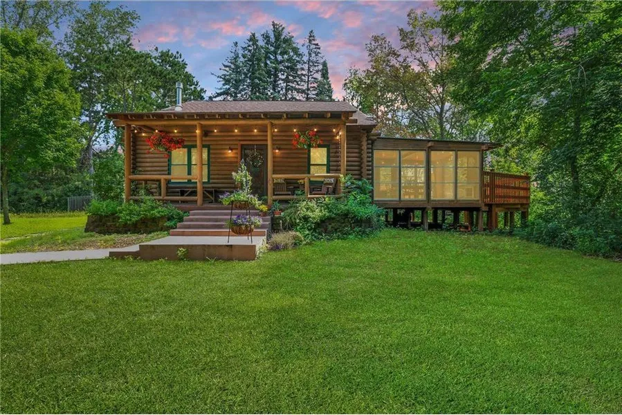 Discover serenity in this charming log home on 3.9 wooded acres in Ham Lake, just 30 minutes from downtown Minneapolis or St. Paul. Surrounded by mature trees, apple trees, and abundant wildlife, this property offers the perfect blend of privacy and convenience. Enjoy evenings in the beautiful screened-in porch, or explore the fenced pasture—ideal for keeping goats, chickens, or even a pony. The home features warm natural woodwork, handcrafted iron gates, and artisan details throughout. A detached 3-car garage provides ample storage and workspace. Whether you dream of homesteading or simply unwinding in nature, this property offers the peace, beauty, and relaxation you’ve been searching for.