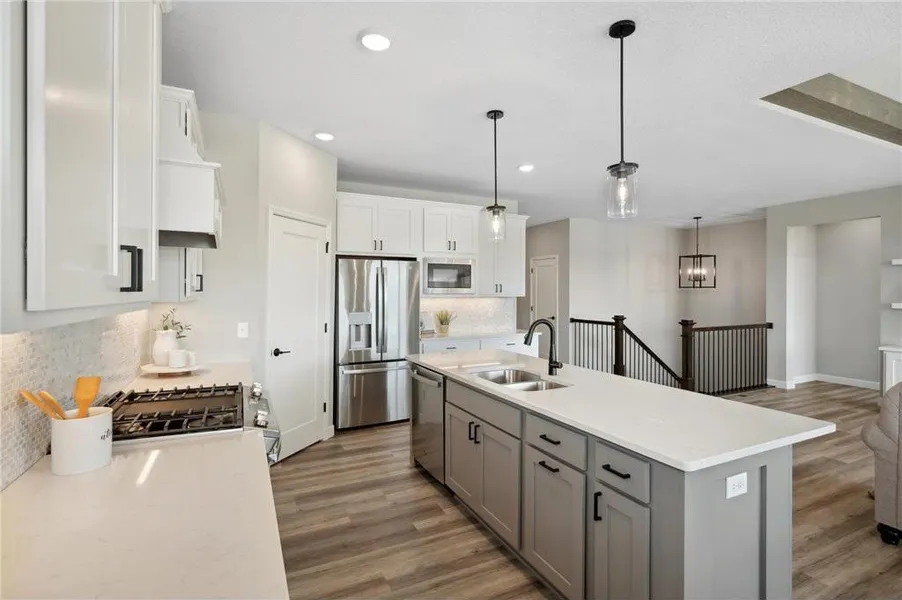 Stunning oversized homesites right off the Rum River! This is a to-be-built home! Approx. 7 months to build. Buyers have the ability to choose home plans, homesite, and features/options. This is our popular Somerset plan with a finished basement and 4 car garage! Main level living at its finest! The living room showcases a cozy fireplace, the kitchen and bathrooms have soft close drawers, the primary suite has a luxury bathroom upgrade, and large windows throughout the home fill the home with natural light. Sod, irrigation, and landscaping included. Enjoy this scenic community tucked in among mature trees and the flowing Rum River.