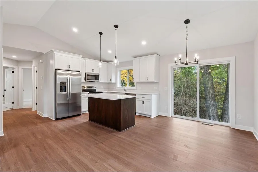 Beautiful split level home by Jonathan Homes with over 2,500 sqft of professionally designed living space! This energy efficient home offers 5 bedrooms and 3 full bathrooms, including a finished flex room that can be used as a guest room, office, gym or playroom. Step into a spacious entry with a large coat closet. The main level features a stunning kitchen with granite countertops, stainless steel appliances, and custom cabinetry, plus an open dining and great room with luxury viny plank flooring and abundant natural light. Two oversized bedrooms and a full bathroom complete this level. Upstairs, the private owner's suite includes double sinks and a large walk in closet. The finished lower level adds another bedroom, full bath, and the versatile flex room. Outside, enjoy a fully landscaped yard with sod, sprinklers, and an asphalt driveway. Every detail is thoughtfully finished- this ho...