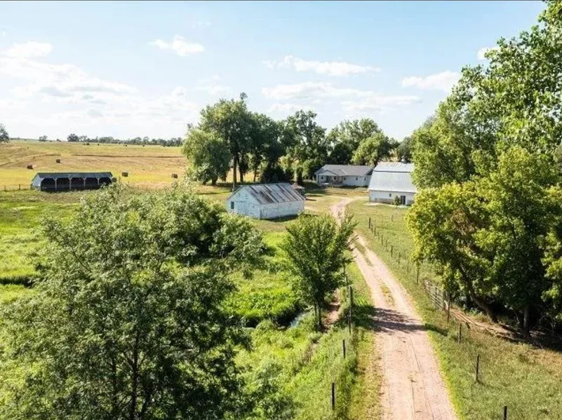 This property has a flowing creek running through the property that also allows the chance to view an abundance of wildlife right from the front porch. This property is a true oasis and has ample opportunity within. There is potential for a permanent residence, an Airbnb, or even a private get away property. The barn has been redone and has potential for a venue as well as other avenues. Next to the barn is a small playhouse that is built well and is very neat. Also located on the property is a shed that would be a perfect place to store a mowing tractor and any other supplies. With a screened in grain bin firepit area, you have the perfect place to sit back and relax in the evening. This home has a large front porch that is as welcoming as can be. Walking in the side door of the home, you are welcomed into the mud room. This is a great place to kick off shoes and leave hats and coats rather than carrying inside. This is also where you will find access to the basement. Through the next door, you enter into the dining room. This home has an open concept floor plan, leaving the dining room open to the kitchen and living room. The kitchen is beautiful, spacious, and features heavy custom-made cabinets with a large island. Right off the kitchen is the laundry room carrying over the same custom cabinets found in the kitchen. The living room is spacious and features access to the front porch. Just off the living room is the 1st bedroom, which is great sized with a nice closet. The 2nd bedroom also features a closet. The master bedroom is very spacious with a good-sized closet. Right off the master bedroom is the main bath, which is large and features a beautiful, tiled walk in shower and a vanity with plenty of storage. Don't miss out on all the opportunities this property has to offer!