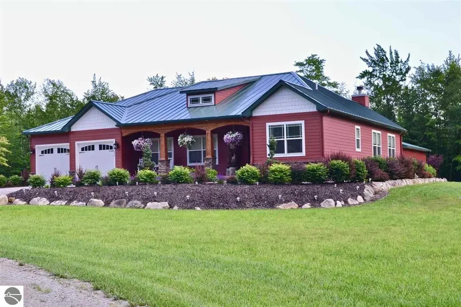 Beautiful Custom built home situated on 60 Acres, fabulous hunting land across from Grand Traverse Bay, Beach access on the street. Features a Gourmet Professional Kitchen with Dual fuel Wolf Oven-stove, Sub Zero Refrigerator, Wolf Microwave, Stainless Farm Sink, sub zero Beverage Cooler, Granite countertops, Entire home has Hickory floors and Cabinets,Floor to ceiling stone woodburning fireplace with Heatilator insert, Seamless hem Metal Roof, Huge stone patio, Entire home and water can be heated by an outdoor Wood furnace or Propane, Professional landscaping,42x42 Morton heated and insulated pole barn with full bath, laundry,RV hook up, Commercial Garage Lighting.The perfect home for the outdoorsman or gardener with its raised fenced in Garden. A must see to appreciate. Very Private. Owner is Licensed Agent.