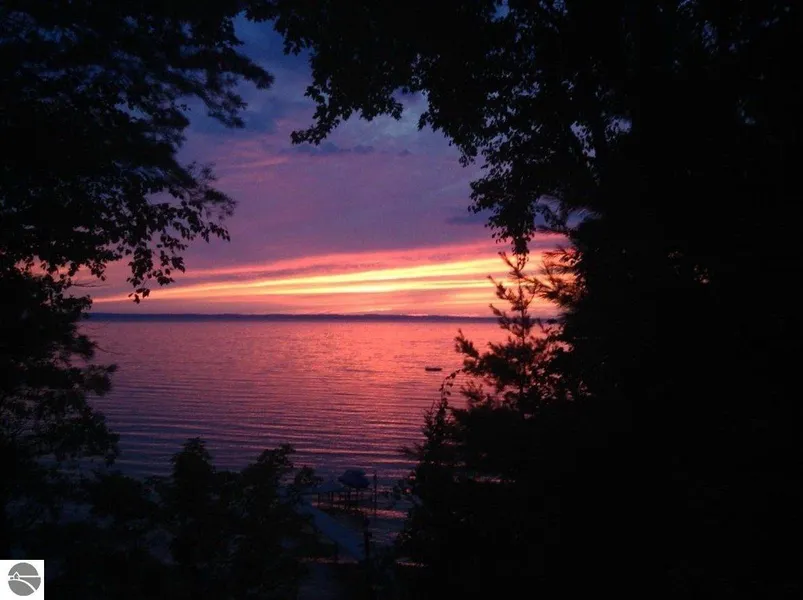 Stunning Custom Home on Grand Traverse Bay with sandy frontage. This luxurious home was designed to take full advantage of the location, tucked into the woods for privacy and with a spectacular Bay view. Enter either by the stone steps through beautiful landscaping or from the elevator in the garage and be swept away by this lovely home. Living room with floor to ceiling windows, cozy fireplace and an entertainers dream wet bar area with wine fridge & great storage. Open to a real cooks kitchen which features miles of solid surface counters to make meal prep a breeze, stainless steel appliances including double ovens, a huge pantry, and a charming breakfast nook. This flows into the dining space with built in cabinetry for serving, all with unrestricted views and American Cherry wood floors stunning! Lake side of home makes outdoor living easy with a large deck running the length of the ...