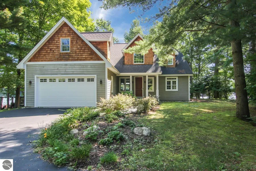 Upscale casual lake living at its finest on pristine Clam Lake. This contempory home built in 2006 has been very gently lived in and feels brand new. Greet your guests on the covered front porch and enter to stunning views of Clam Lake. Open concept living room, kitchen and dining rooms all overlook the lake. Living room features a full water view from the wall of windows, cathedral ceilings and a wall of built ins. Kitchen is a cooks dream with stainless steel appliances expansive granite counter tops with a large bar area ideal for entertaining plus a cozy breakfast nook. Just step out the lakeside door onto the covered porch or out to the patio for al fresco dining. Main floor master suite is a peaceful retreat w/large walk in closets and a spa bath featuring double vanities, a soaker tub and walk in tiles shower. Upstairs are two spacious guest rooms plus a full bath as well as a bonus room currently used as a 4th bedroom with a private bath. Could also be a great family room. The outdoor entertaining space here is thoughtfully designed with a large slate patio lakeside w/built in firepit and a covered porch for rainy days. A few steps away is the deck overlooking the lake, sit and enjoy lake life. Permanent dock! Just bring your bags, furnishing to be included. Enjoy the peaceful setting on Clam Lake and all access to the Chain of Lake offers with Torch Lake less than a half mile away. Offers to be reviewed by Seller on February 7th at 3:00 pm