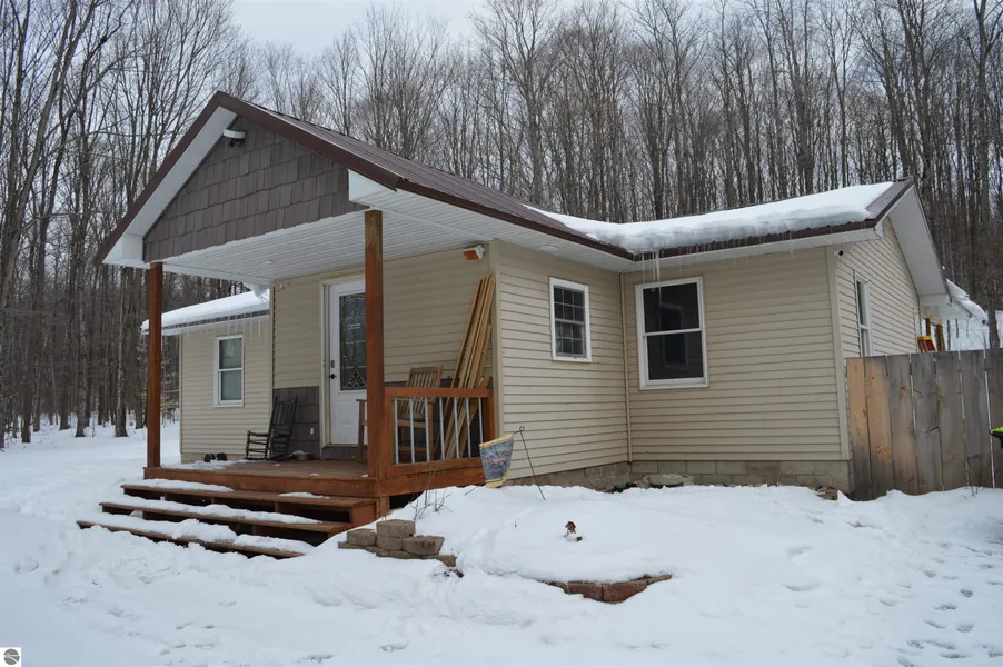 Awesome 3 BR 2 Bath home situated on 10 Heavily Hardwood acres. Many great features including a main floor master suite with walk in shower and heated floors, open floor plan, foyer entrance, covered front porch, large covered back deck, generator plug, large 24x36 garage with 12x12 wood shed and 10x36 lean-to, small food plot, and much more. All this located in a recreational paradise. Easy access to lakes and trails.