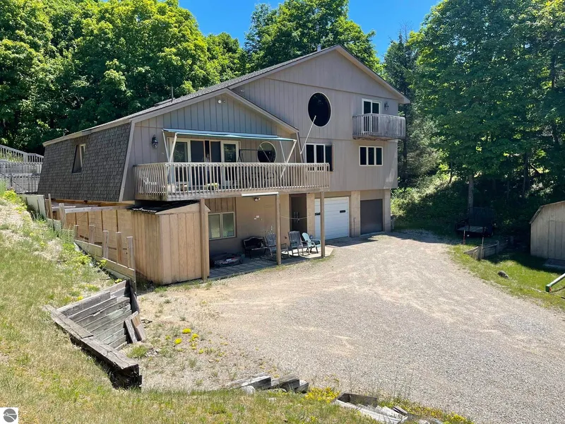 Sprawling contemporary with 3 self sufficient levels serviced by an elevator and staircases. Spacious open living comprised of 4200 square feet and 4 Bedrooms, 3 baths 1300 sqft of multi level deck. Enjoy over 7 acres of nicely wooded property close to Intermediate Lake access.. This home easily accommodates larger extended families.