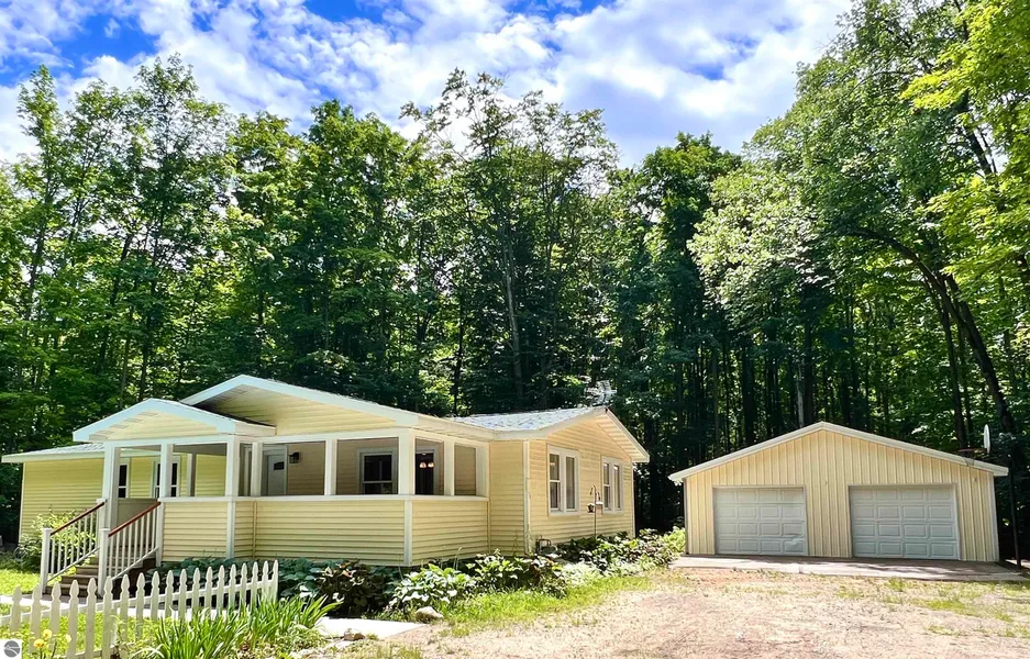 Beautifully maintained and a perfect blend of comfort and convenience. Gorgeous 14x20 covered front porch welcomes you to a 3 bed, 2 bath home. Open concept allows for a seamless flow. Interior is all dry-walled and freshly painted. Offers a custom-built kitchen and island. Bamboo wood flooring, and recessed lighting. Some newer updates include roof (architectural shingles) and overhangs, vapor barrier and vinyl siding, windows and frames, and a 40 gal. water heater. Home sits on a crawl space with a concrete pad. Detached garage offers an insulated workshop, plus there's a shed for extra storage! Situated on over 2 acres of a peaceful and secluded setting and comes with a pool, firepit, and landscaping with perennials for you to enjoy! Make this house your home!