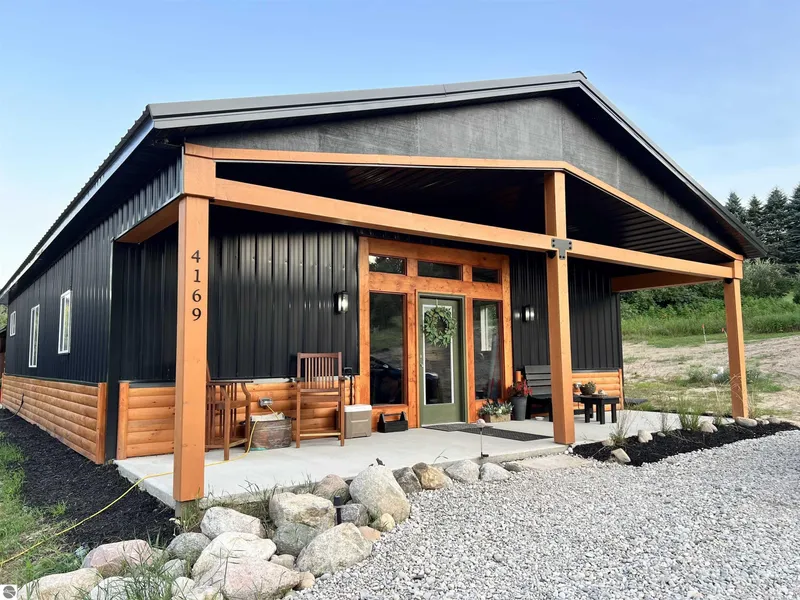 Newer Construction Home built in 2024, Golf Course Frontage on my favorite hole #5 on the Summit Golf Course. Fantastic vista views down the Fairway to the Green. Private 1.2 acre property, open views, nice wooded areas. No H. O. A fees to deal with, short term rental friendly. Unique floor plan could sleep 6-8 comfortably. Open plan, cathedral beamed ceilings, plenty of light, great views. 3 bdrm, 2 nicely appointed baths, Big kitchen with Kraftmade cabinets, stone countertops, built in stainless steel appliances. Covered front porch, enjoy sunset views in the evening, large concrete patio with covered gazebo overlooking Fairway and firepit out back. Large 20x34 foot detached garage set up for overflow bunk house or entertainment area with 2 windows and doorwall. 4 bedroom septic installed. Owner is Licensed Michigan Broker.