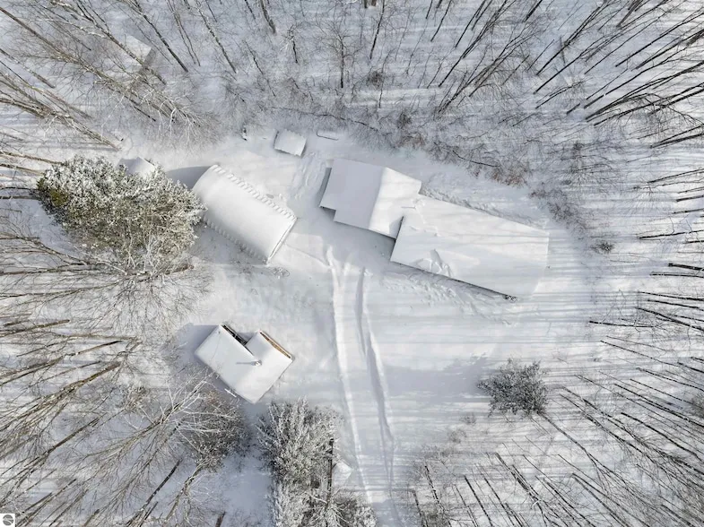 Private Northern Michigan dream property. Imagine acquiring two parcels comprised of 46 plus acres of a private realm where the air is crisp with a rolling mixed forest canopy. The nights are silent and the opportunities for discovery are boundless. Escape the demands of the everyday world and discover your own secluded sanctuary. This serene landscape is a blank canvas awaiting your vision, whether you dream of a private family compound, a secluded hunting haven, or a legacy estate where memories are etched into the wilderness. This original vintage structure, metal pole barn and a two bedroom, two bath ranch style dwelling provides a starting point, offering potential for warmth and shelter as you design your ultimate escape.
