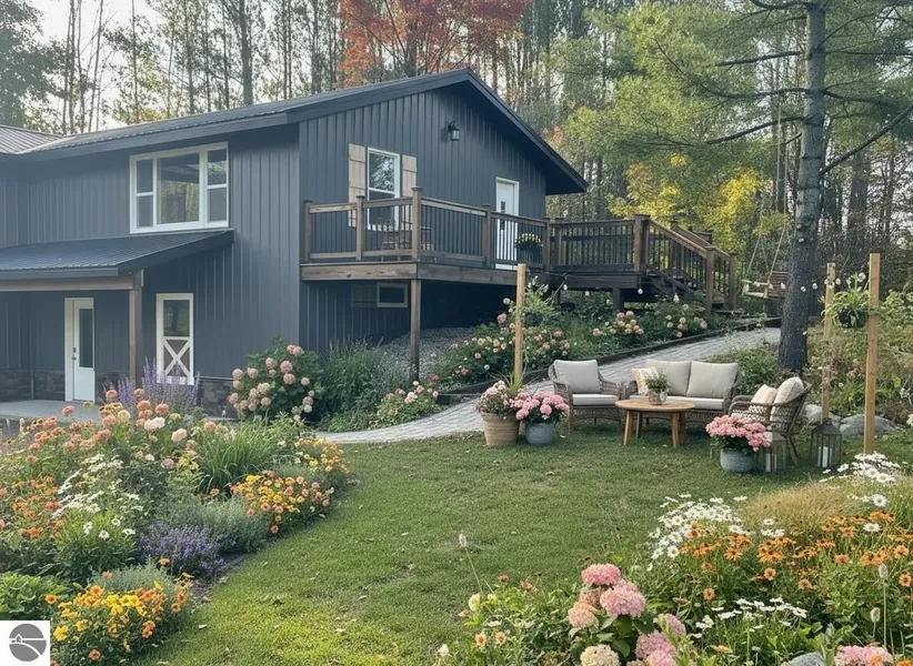 Wow! Outdoors Enthusiasts, this contemporary and spacious two story home featuring 4 bedrooms, 3 bathrooms, high speed internet and situated on 3 acres just 4 miles south of East Jordan and the South Arm of Lake Charlevoix may just be the property you have been waiting for. The main floor offers an open-concept great room combining the living room, dining area, and kitchen. The home is virtually a new build. The original footprint was used, however, it features completely remodeled spaces: 1. New metal roof and siding provide a contemporary look and ease of maintenance; 2. New luxury vinyl plank flooring enhances the living room, stairways and hallways, creating a modern and cohesive look; 3. Three bedrooms and two beautifully tiled baths are located on the main, walk-up level; and 4. The new kitchen includes granite countertops and GE Stainless Steel Appliances with Slate Matte finish that hides fingerprints for easy care. Ample storage is thoughtfully integrated throughout the home with numerous closets and storage areas. The finished basement adds approximately 1,400 square feet of versatile living space, ideal for entertaining or family gatherings. It includes a spacious family room, a fourth (non-conforming) primary bedroom, a tiled bathroom, storage room and new mechanicals. Outdoor living is enhanced by a back deck perfect for dining al fresco. A completely restored, two story outbuilding provides additional storage and functionality. The property has fruit trees, a generous yard, established plantings, and a creek. Located near Snowmobile and Hiking Trails, Webster Bridge and Rogers Bridge End (Jordan River Accesses for kayaking and fishing), Raven Hill Discovery Center, Cosner Preserve, East Jordan, Boyne City, and more. This property combines comfort, space, and outdoors enjoyment in a peaceful Northern Michigan country setting. All information and measurements are deemed reliable, however; should all be verified by the buyer and/or buyer agent.