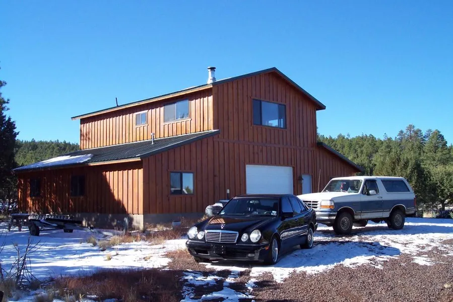 Ponderosa & Pinion Trees. Backs to National Forest. Great Elk, Deer and Turkey Hunting Unit 3B. Gated area. 2211 sq ft includes garage & upstairs. 3 Bed / 2 Bath. Off Grid. Views off balcony looking into National Forest. 5 +/- Acres. Large garage. Well treed