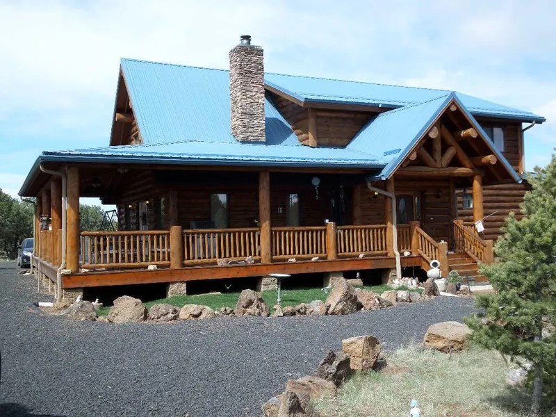 This is the full log home you've been searching for! Secluded on 10-acres of level property with 360 degree views of surrounding area. Wrap around decks for family enjoyment and entertaining. Open great room with stacked stone fireplace and custom log mantle. Kitchen features granite countertops, breakfast bar eating area and all stainless steel appliances. The huge logs in this home are magnificent. The open loft area makes a great office/computer/library. Fully fenced with an electric gate entry as well as a separate manual gate at the side. Both attached and detached garages. The detached workshop-garage is heated, features a sink & commode, lighting and storage. Fenced garden area and spacious fenced dog run. Parking available for an RV with hook-ups to water and septic.