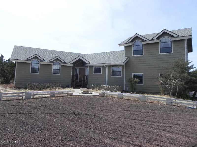 Serene country living in Winchester Trails, approx 15 miles southeast of Show Low. Sitting on 2.2 fenced acres sits this 2-story, 2,295 sqft home, 3 bed/2 bath down, 1 bed/1 bath, sitting area (possible bedroom) upstairs, 2-car attached garage, with a huge detached garage/workshop, circular driveway.