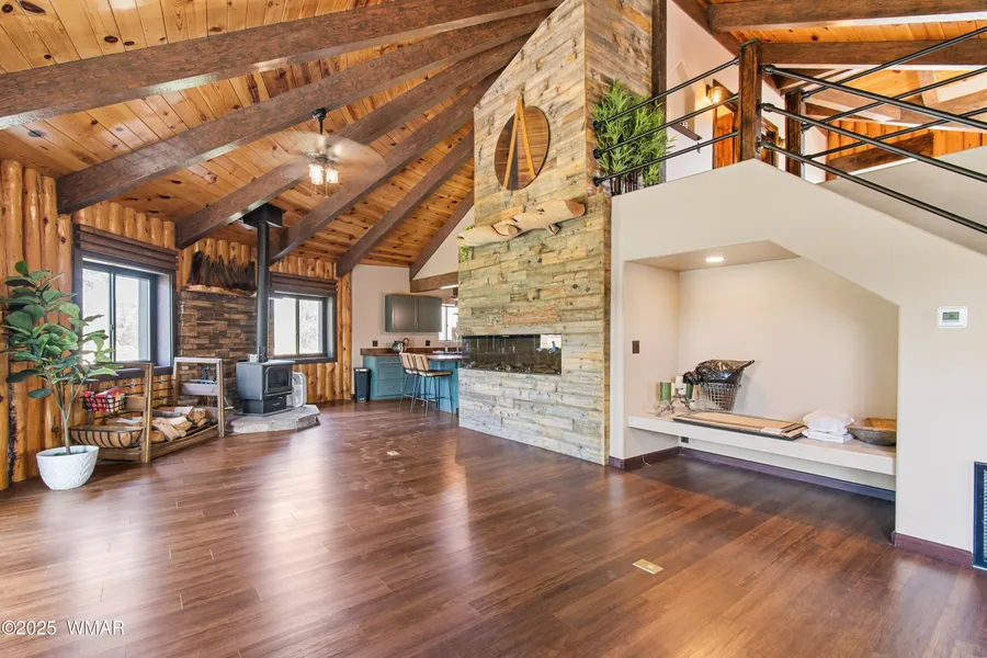 Discover this beautifully remodeled 2,500 sq ft off-grid paradise in Vernon, AZ, set on 10.03 private, level, and tree & meadow-covered acres. Remodel completed in 2025, the residence offers 4 bedrooms and 3 bathrooms with modern updates throughout, blending comfort and functionality. This horse property is fully equipped with a 4-stall horse barn, making it ideal for equestrian use. Additional improvements include a new charming tiny house, a high-end professional greenhouse with an outdoor garden area, and a rare underground root cellar for storage and preservation. The fully-owned solar system is state-of-the-art. Full RV Hookups. The gated entry ensures security & enhances the sense of privacy, while the peaceful setting among the trees and water feature provides a tranquil retreat. There are 2 wells on the property, but only 1 is being used. The exterior siding covers the vertical log work that makes up the exterior walls - highly insulated and most likely bulletproof. While the solar system maintains the home, it's also connected to Navopache Electric.
