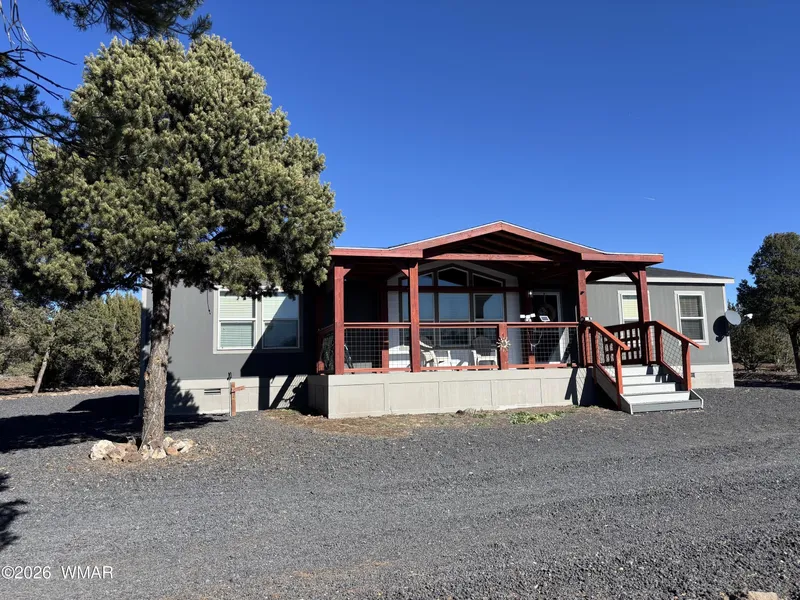 Tucked away in the highly desirable Show Low East neighborhood, this beautifully maintained 2018 model home offers the perfect blend of privacy, comfort, and mountain charm. Situated on a heavily treed 1.8-acre lot, you'll enjoy the peace and quiet of a true White Mountains retreat, with low traffic and added seclusion thanks to the neighborhood's single road in and out. This 1,456 sq ft, 3-bedroom, 2-bath home is in excellent condition and thoughtfully designed for easy living. A very functional layout, and serene views from the large front porch create an inviting getaway and atmosphere that feels like HOME the moment you arrive. One of the standout features of this home is the impressive 25x36 ft garage, complete with double doors and a dedicated shop area perfect for hobbies, storage, projects, or outdoor toys. Whether you're a weekend tinkerer or need space for work and play, this garage delivers. Did I mention there is space to park an RV? Located in the small, welcoming community of Vernon, Arizona, in the heart of the White Mountains of Northeast Arizona, this property offers cooler temperatures, star-filled skies, and a slower pace of lifewhile still being within reach of modern conveniences. If you're looking for quiet, space, trees, and quality, this Show Low East home is a must-see. Come experience the lifestyle this special property has to offer.