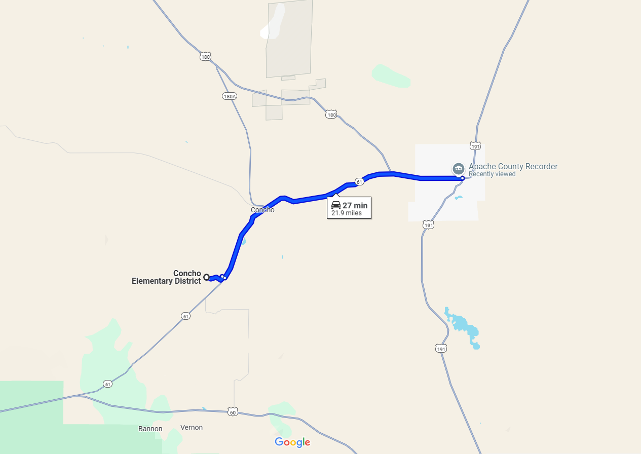 Closest Town/City: Concho, Arizona 85924 21 mins (16.6 miles)