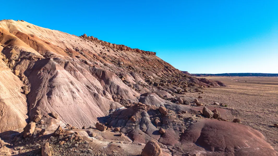 Agricultural-General zoning provides maximum building flexibility with no minimum size requirements. Apache County welcomes alternative building methods including earthships, tiny homes, cordwood, rammed earth, and cobb construction. You can build a traditional home, place a manufactured home, or live in an RV with an approved septic system. The level terrain in the center provides natural building sites, while the dramatic painted rock formation to the east creates a one-of-a-kind backdrop.