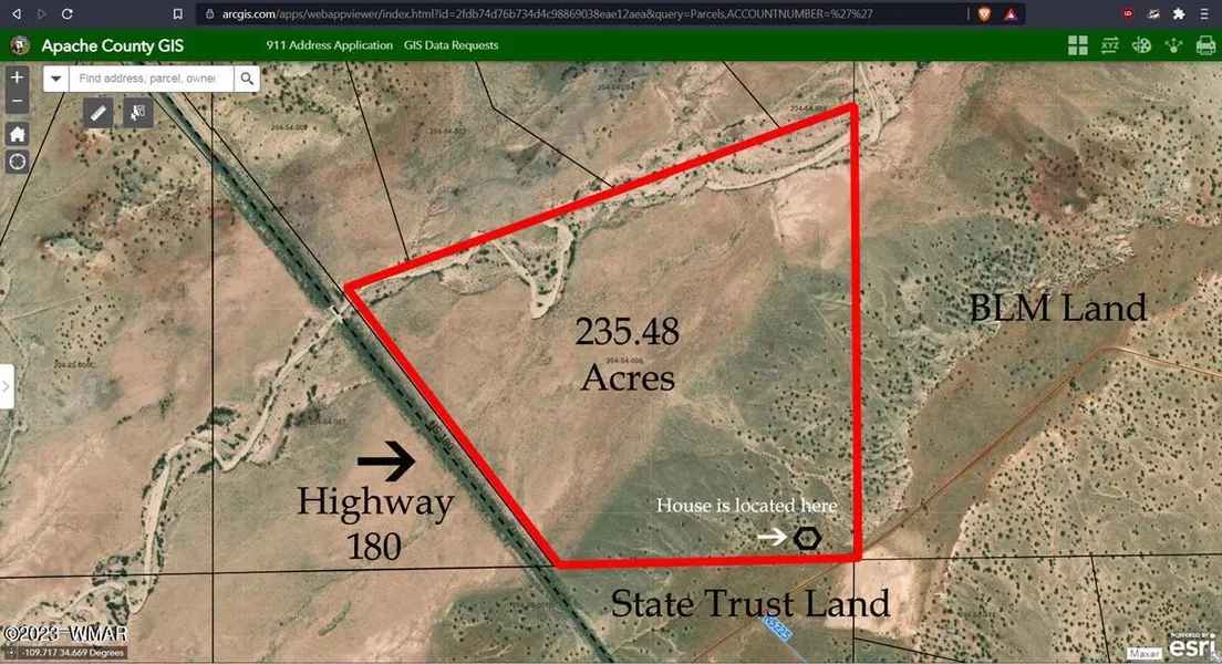 PRICE REDUCED !!!! A rare opportunity to own over 235 acres adjacent to Highway 180 just South of the Petrified Forest National Park. This land has its own private entry gate, fences, and a mailbox. This entire 235+ acres complex is zoned agricultural with no HOA or CCRs with a confirmed working private well and storage tank. This was previously an off grid homestead. The previous owner had to move from the land after living there for 17+ years. Property has been vacant for 4 years. Otherwise, there are 235+ acres and a whole lot of other options to place a tiny home, RV, build a home, etc. Also of note, there is a solar panel array mount on the property with combiner box, but solar panels are non-functional at this time. This very large parcel of land borders BLM land (Bureau of Land Management) to the East and State Trust land to the South and is your own secluded paradise with...