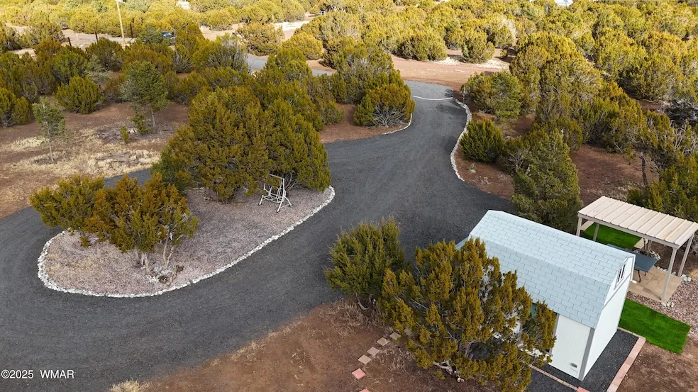 This property is a fantastic retreat in the White Mountains! With its unique features like the modern farmhouse-style Mini dry Cabin, There are many upgrades to the 1 1/2 yr old Mini dry Cabin/Tuff Shed (10 x 14 feet). 3 slider windows, transom windows, loft with sturdy wooden steps, radiant barrier on ceiling, extra insulation, extra caulking (makes it moisture and mouse proof), vent covers, custom two-tone paint, galvanized metal front porch cover, kitchen cabinetry, storage closet, wood trimmed windows, extra locks inside and out and etc. When you plug a generator to it you have electricity inside. Loveseat hide-a-bed, large white cabinet, newer queen size mattress (in loft), newer rugs, and patio table are included. Cell phone service is strong on the property.