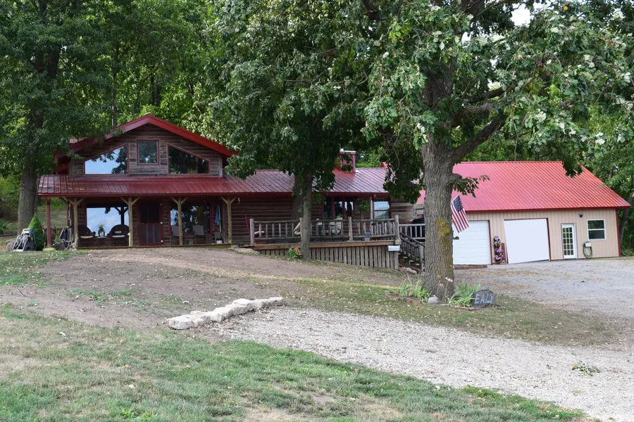 Exceptional lodge style home with waterfront views, sits on 25 ACRES m/l in which 6.56 acres are in the Forest Reserve Program. Enjoy fishing from your boat, dock, or bank. Experience a leisurely walk, bike ride, hiking, or four wheeling on the off-road trails throughout the timber. Updates include newly installed hardwood floors, a gas forced heat pump, and central air. This GORGEOUS home features an open kitchen, a large living room with a new fireplace, spacious master bedroom, and a 30'X40' heated 2-car detached garage with an insulated loft allowing for great storage. The abundance of wildlife makes this an excellent recreational property, or a perfect home for a retired couple with the most beautiful views in southern Iowa. Privately, located at the end of Blackberry Ridge Road, Unionville, IA. This subdivision borders Stephen's Forest State Park. You won't want to miss out on this spectacular property. Call for your showing today!
