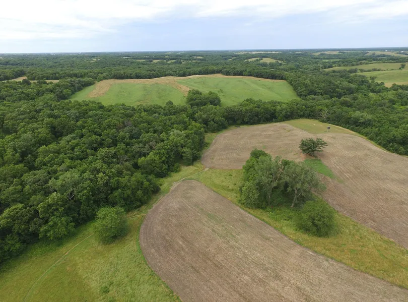 Not many small farms pack a punch like this one does. Located near Lake Sundown in Appanoose County, Iowa, this 38.18 +/- acre Premier farm has it all; food, water, mature hardwoods, box blind, build sites, big buck history, and located in a big buck powerhouse neighborhood with large landowners in each direction! A hardwood ridge runs north and south on the west side of the farm and makes for the perfect location to catch a buck cruising during the rut as well as provides great bedding for those late season hunts. Previous landowners mention seeing 40+ deer per evening during those cold late season hunts. Turkeys are bountiful here for those who enjoy chasing spring gobblers. Trail cam intel tells the story of a solid age structure and good genetics and the listing photos show the beautiful views for building your dream home or cabin on a farm you can walk out the back door and have high quality hunts on.
