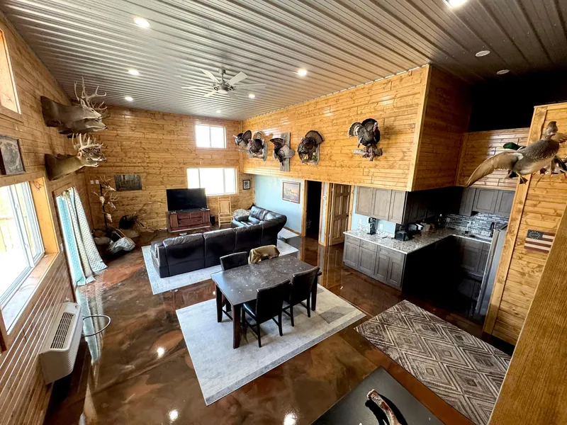 Experience the remarkable spaciousness of this exceptional Barndominium, featuring 3 bedrooms, with 2 non-conforming. With 3 modern bathrooms designed for ultimate comfort and convenience, this newly built home commands attention on approximately 7 picturesque acres m/l, offering an abundance of outdoor space for both relaxation and recreational activities. Enjoy the luxury of in-floor heating, ensuring a warm and inviting atmosphere throughout every corner of the house. The advanced on-demand water heater guarantees youll always have a steady supply of hot water when you need it most. The impressive master bedroom, complete with a lavish en-suite bathroom, is ideally located on the main level for effortless access, along with an additional full bathroom. Upstairs, youll find 2 non-conforming bedrooms, complemented by another full bathroom, making it an ideal setup for family or guests. Positioned near the stunning Lake Sundown, this property presents unmatched opportunities for outdoor adventures and serene escapes. Don't miss out on this incredible opportunity!