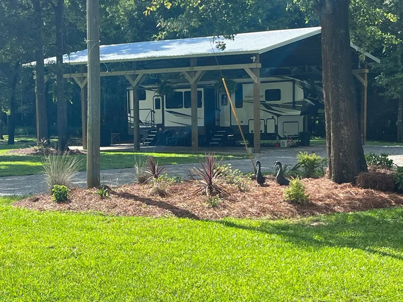 New turnkey RV/Camper lot at Eagles Point on the Altamaha thats ready to go could be yours. This .77 ac lot is ready to bring your family to get out and enjoy all the amenities that this devlopment has to offer. Lot #50 has water, power and septic in place along with a fully manicured yard with flower beds. There is a 36' x 50' camper shelter with paver tiled flooring over concrete to enjoy the family bbq or just sit and relax while you enjoy the river views. This property sits inside the gated community of Eagles Point which has 6 1/2 miles of roads and trails to ride through and access roads to the 3 sandbars that are available on the property as well as 3 oxbow lakes that lot owners have fishing rights to access. This property is ajoined by a 542 ac conservation easement to enjoy the peace and quiet of the river life as well as a private community boat ramp for watersports for the en...