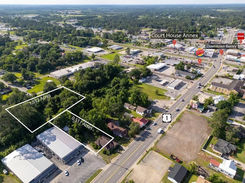High traffic commercial property positioned between US 1 and Luckie Street in Baxley, GA. The existing structure can be converted to office space or demolished for new construction.