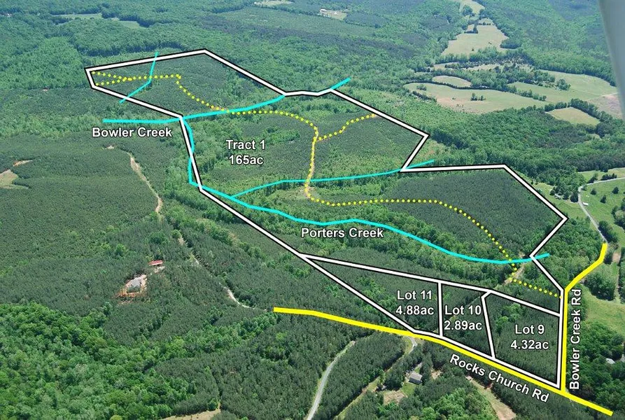 Approx. 800' of frontage on Bowler Creek Rd and 670' of frontage on Rocks Church Rd