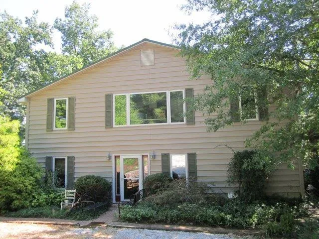 Unique custom 4 bdrm home perched on a bluff overlooking the upper Appomattox River. Huge house with huge rooms. Giant wrap around porch and deck. 8" steel frame construction. Master suite with dual walkin closets, garden tub, separate shower, double sinks, French doors to patio and fish pond, Kit/din/living room has cathedral open through second floor with balcony and fireplace with windows all around, extra large laundry utility room, office/shop and second bedroom with private bath, all this on the first floor. The second floor has two more oversize bedrooms, each with private bath, a giant family room (15x38), lots of closet space and the balcony overlooking the great room. 17.67 mostly wooded acres with large hardwood trees right down to the banks of the Appomattox River with over 1000 feet of river frontage. Fenced for horses with stable, lighted riding ring, hay shed. About five a...