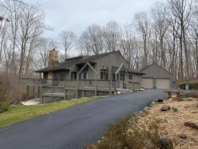 Welcome to Golfers Circle! This contemporary custom build is the perfect place to call home. Large eat in kitchen boasts solid wood cabinets and Corian island. Separate dining room for entertaining. Large great room with fireplace. Numerous trex decks and patios for enjoying your morning coffee. Hot tub room with balcony for ultimate relaxation. Heated attached two car garage and 12x8 storage shed. All nestled on over 6 acres with creek. Lots of privacy, but convenient to everything. This property has it all! Call for your showing today.
