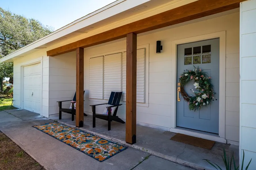 Darling property IN TOWN on TWO LOTS (.2296 acre) with a WATER VIEW, REMODELED. Being offered FURNISHED with a few exclusions. The giant, gorgeous, mature Live Oaks offer a perfect spot for sitting in the swing and watching, birds and squirrels while enjoying the bay breezes. The back porch is also a lovely spot for sitting and watching hummers at the feeders. This property has a storage building in the back that you could enlarge and turn into an outdoor kitchen/entertainment space or use to park your golf cart. The property has had tons of improvements including: new paint inside and out, all new flooring, tile, backsplash, concrete kitchen countertop, floating shelves, butcher block bar, stove, vent-hood, painted cabinets with new hardware, new bathroom tile on floor and vanity top, new lighting throughout, barndoors on closets. Also installed sod and some landscaping. The A/C is a 20...