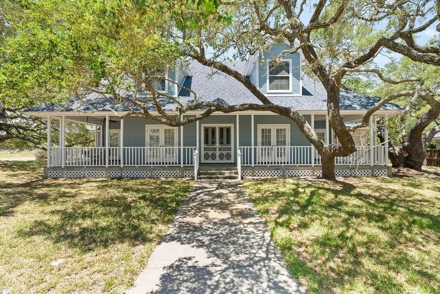 Take another look at this gorgeous home. Freshly painted exterior a and new price! Welcome to 2500 Turkey Neck Circle, a Victorian Country-style gem nestled on a peaceful corner lot in Rockport, Texas. This enchanting home offers a spacious living room with a charming fireplace, a formal dining room, a sun-drenched sunroom, and a cozy reading room-perfect for all your leisure activities. The elegant covered porch invites you to relax. I can just see the fall decor or a cozy swing. A detached two-car garage provides ample space for your vehicles and storage needs, while a deeded boat slip enhances your waterfront lifestyle. Experience the perfect blend of classic charm and perfect location in this serene retreat.