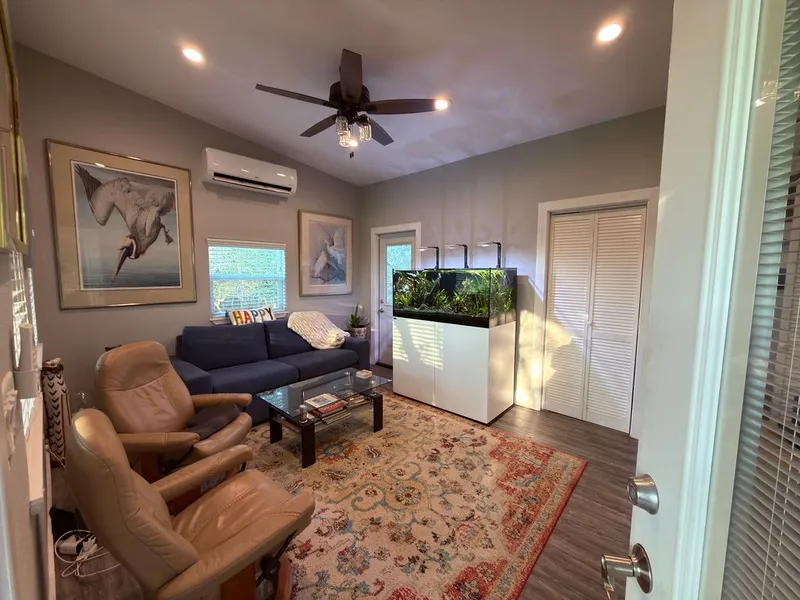 A RARE PRIVATE RETREAT ON PRISTINE ACREAGE!! Tucked away on just shy of 8 breathtaking acres in the county, this truly private 2-bedroom, 2-bath property offers a peaceful escape surrounded by nature! A tranquil pond stocked with catfish sets the scene, while abundant wildlife including deer, black-bellied whistling ducks, and majestic sandhill cranes. Unwind on the custom pine wood patio featuring a built-in hot tub and take in breathtaking sunsets. The main residence spans 492 square feet and includes an owner’s suite, custom bath, full kitchen with granite countertops and full-size appliances! The bonus room includes a 400 sqft space with a full bathroom, closet, and washer/dryer. Additional improvements include a 308-square-foot workshop with a 1,200-gallon water reservoir, plus two additional storage buildings (12x16 and 12x25), a 3-car carport, raised garden bed and plenty of mature landscaping! Call to schedule your private tour today!
