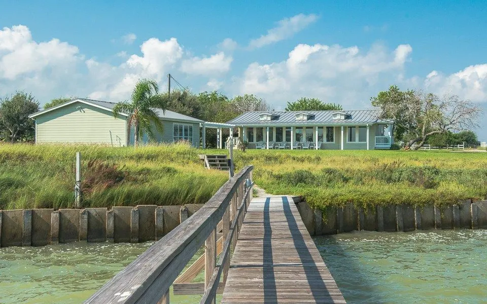 Waterfront property on Copano Bay with home, guest house and 280'lighted pier complete with a boat lift, dock, built-in seating and a cleaning station.