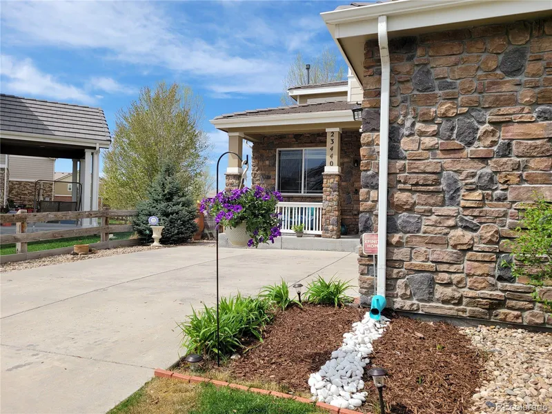 This home in prestigious Tallyn's Reach community is sure to check all the boxes on your list. With 5 bedroom and 3 baths you will have plenty of space for your family or guests. The gourmet kitchen has granite countertops, stainless steel appliances, an island, a built in eating nook and a pantry. The home has both a family room with a gas log fireplace and a formal living room, or use the formal living room as a formal dining. Upstairs you will find 4 of the bedrooms including the master. The master has two closets and the on-suite master bath has a 5 piece bathroom set. One of the hall bathrooms and laundry room is upstairs to easily serve the bedrooms. Downstairs is the fifth bedroom/study that has built-ins and an attached bathroom. The home also has a 684 sq. ft. unfinished basement that has been stubbed for plumbing. Outside this home has impressive curb appeal with a covered front porch and a concrete tile roof. When it is time to entertain or just relax you will be very pleased with the covered rear patio with a ceiling fan. The rear yard has a tiered flagstone deck/path, gardens, play area, sprinklers, fence, mature landscaping. When everything is in bloom you have a very private and tranquil back yard. This home backs to open space, a pond and has great mountain views. You may even see a deer or two. Large oversized 2 car garage will help with storage. Cherry Creek Schools; Clubhouse/Pool/Tennis and you can walk to the park.