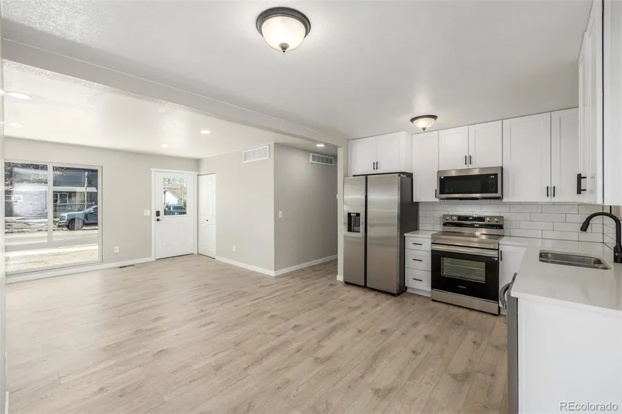 Discover this charming 4-bedroom gem waiting just for you! From the moment you arrive, you'll be captivated by its inviting curb appeal and timeless design. Explore inside to a warm and welcoming living space featuring a cozy gas fireplace, a soothing neutral palette, and elegant wood flooring that extends throughout the main areas. The beautifully updated kitchen is a chef’s delight, showcasing sleek stainless steel appliances, gleaming quartz counters, crisp white cabinetry, and a stylish tile backsplash that adds a touch of modern sophistication. Each bedroom is well-sized and thoughtfully designed with ample closet space, providing plenty of storage and privacy for everyone. The highlight of this home is the spacious basement, offering endless possibilities! Whether you envision it as a family room, media center, or an entertainer’s retreat, this versatile space is ready to accommodate your lifestyle. It also includes a fully equipped second kitchen, two additional bedrooms, a full bathroom, and a dedicated laundry area—perfect for multi-generational living or hosting guests with ease. Check outside to your private backyard oasis! The covered patio invites you to unwind with morning coffee or evening gatherings, while the generous yard space offers limitless potential—add a sparkling pool, create a lush garden, or design the ultimate outdoor entertainment area. A handy storage shed completes the space, providing extra room for tools and equipment. Nestled in a prime location just minutes from parks, a variety of dining options, shopping, and more, this home offers the perfect balance of tranquility and accessibility. Don't miss the opportunity to make this stunning property yours. Come and experience its charm firsthand!