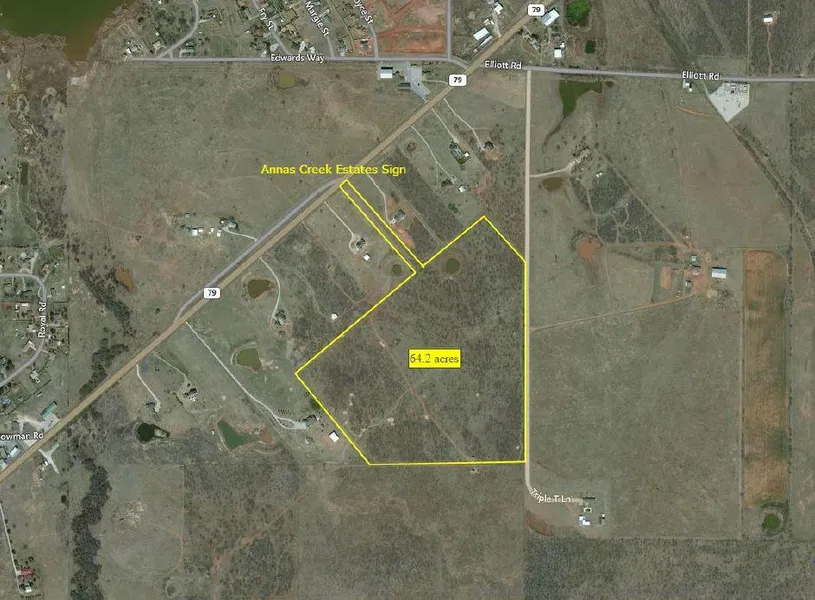 Outstanding rural 64 acre home site with MUD water meter, just minutes away from retail at Anna's Creek Estates on Hwy 79 South. Narrow highway frontage to secluded tract perfect for watching country sunrises. One stock tank never dry. Priced $24,000 under tax appraisal, this is a great opportunity for a family to build their dream home in the country!