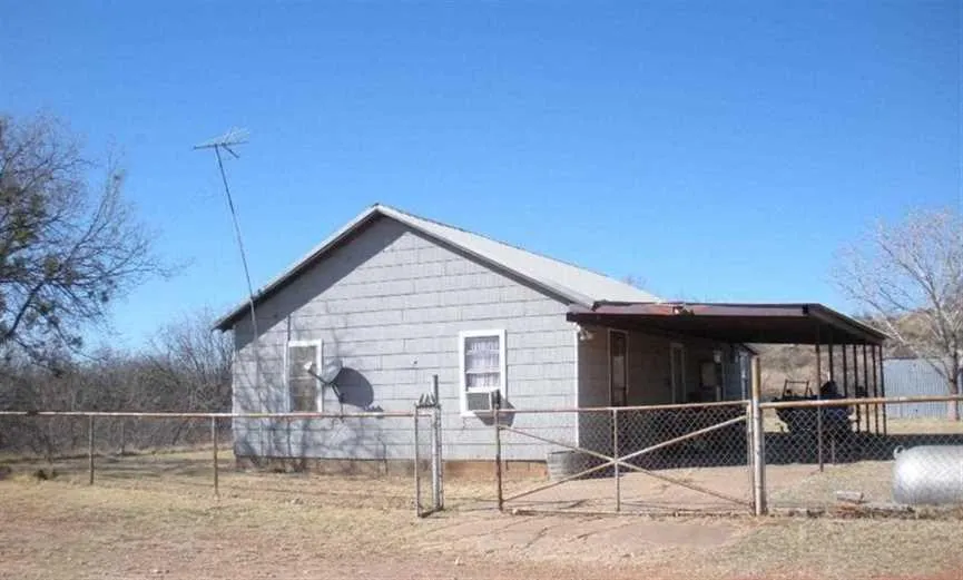 Perfect for a weekend getaway - located at Lake Kickapoo in Archer County, Holliday, TX 76366. This 2 bedroom 1 bathroom cabin has 1,056 sq ft, a large eat-in kitchen, large living room and an extra storage room. Metal roof was added in 2011. Septic was updated in 2003. Water heater was replaced in 2010. The furnace is propane. Water is supplied by Wichita Valley. The yard is fenced and contains a storage building and a clothes line. The carport is single width, but you can park your boat at the back end and have plenty of room for your vehicle. Unobstructed views of Lake Kickapoo right across the road with fishing off of the pier or just watch the ducks and geese play. The lake lot lease is $828 per year and can be renewed upon purchase for 25 years w/an automatic renewal for another 25 years. The school bus for Holliday school district picks up in the neighborhood.