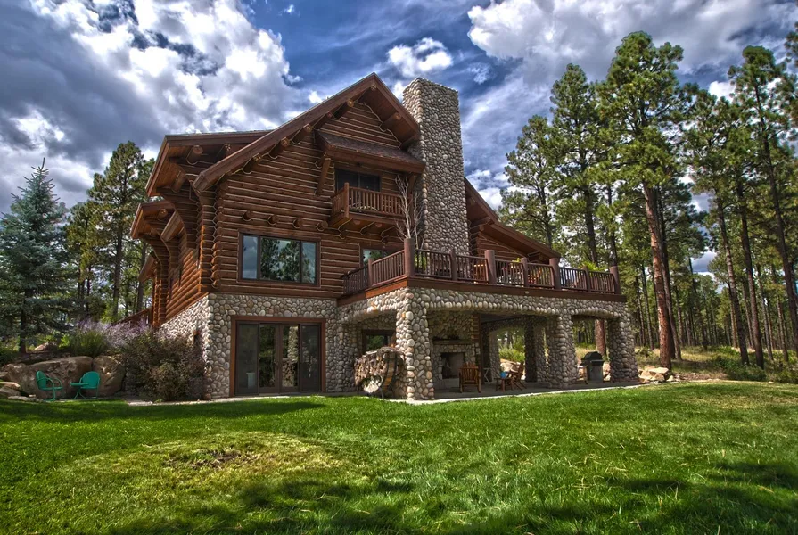Exquisite handcrafted full round Log Home on nearly 100 private acres in Hidden Valley Ranch (lot 8 & 9). This is the largest private parcel in the gated community of Hidden Valley Ranch offering your own pond and creek running through the property, trails and tremendous diversity in the trees and landscape. 3657 sf 4 Bedroom 3 Bath with over 1900 sf of covered outdoor living environments around the house. Enjoy all times of the day in your tranquil outdoor space...sunset sitting deck facing to the West...outdoor "great room" facing north for views to Pagosa Peak...open deck to the East with wood burning rock fireplace to enjoy the east views and then to the lower level covered living space with wood burning rock fireplace and great area to watch snow falling while we grill out. 100 year old reclaimed tobacco warehouse wood flooring with in-floor radiant heat. Vintage kitchen features a Wolf Commercial Range, two Antique Hoosier Cabinets, Antique Cast Iron Sink and cabinets made on-site. Impressive great room surrounded by windows bringing in the natural setting. His/hers master bathroom suite includes a 8'x10' walk-in river stone shower. Enjoy views of both the North and East Range of the San Juan Mountains through the mature Ponderosa Pine. The separate 48'x84' barn/garage/workshop is a multi-use building of your dreams, (replacement value on building $1,100,000).