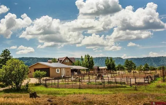 Beautiful 5.13 acre horse property conveniently located to town. Expansive mountain views and an extremely well maintained, energy efficient, low maintenance 2,886 square foot home - 3 bedrooms, 2.5 bath with laundry/mud room, den, formal dining room, family room and bonus room over the attached 2 car garage. The exterior has a shed row barn with three 12x12 horse stalls with large attached corrals, electricity, automatic waterers, and an attached 8x12 tack room. The additional 1,008 sq ft. hay barn/shop with concrete flooring will hold over 350 bales of hay, 2 tractors and a pick up. Also included are 2 storage sheds, 2 riding arenas and 4 cross fenced pastures, Cameo fencing with 2 strands electrically charged and powered by solar. Sprinkler system for the yards, with a drip system for trees and flowers. Views in every direction, fenced back yard. The home offers a central vacuum, forced air heating, central A/C and tankless hot water heater. The main level boasts Australian Cypress hardwood flooring, abundant windows for lighting and taking in the views, ample storage and custom built-in cabinets. The master is on the main level with a walk-in closet and full bath with granite counter tops. Spacious kitchen area with breakfast nook, plenty of cabinets, Quartz counter tops, stainless appliances, gas range with convection over, built-in microwave and desk area. Two guest rooms are just up the stairs with their own private bathroom. A short horseback ride from Parelli Natural Horsemanship and a 3 minute drive from the grocery store, dining and shopping. The perfect home for enjoying Pagosa Country on horseback. Sixty foot round pen is negotiable, but not included in the sale.