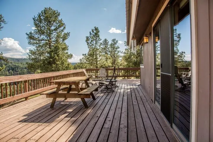 Located in the coveted Upper Blanco Basin, this 57 acre horse property borders national forest and is conveniently located only 1.6 miles from Highway 84. The spacious one-level home offers great views of the east range including Square-Top Mountain, vaulted T&G ceilings in the living room, large kitchen and dining area, updated bath rooms, hand-scraped fir wood flooring, and a wood stove. Over 1200 square feet of deck area is perfect for taking in the mountain views and enjoying the wildlife. The large attached 2-car garage includes an additional work-shop area. Excellent horse property consists of 3 separate pastures which have been well maintained with extensive weed control and over-seeding. The fencing and cross-fencing has been recently updated and the 3 separate pastures make for easy management. There is a loafing shed, tack storage building, and a separate building for hay storage