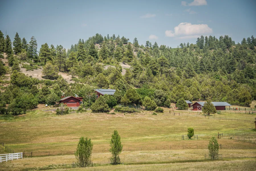Privacy, close to town, a rare find in the desirable Meadows 3 subdivision. The home is 3,129 Sq. Ft., 3B, 3B on 12.35 acres at the end of a cul-de-sac, just 2 miles from City Market and Pagosa Springs Medical Center. The main level kitchen has granite countertops and custom hickory cabinets. Seller installed a new dishwasher, gas range, and garbage disposal in 2020, a new water heater in 2019, and a new roof with 18 solar panels installed in 2010. The finished walk-out basement can serve as a mother-in-law or caretaker suite with a private entrance, a second kitchen, bathroom (newly remodeled), and a sauna! The carpet throughout the home provides warmth and comfort. The paved driveway leads to an attached, oversized, two-bay, heated garage and workshop with bath and lots of storage. Self-sufficiency is available via a dual fuel backup generator and an auxiliary water system with a 1,000-gallon cistern, pressure tank, and pump. This property has a 1200 Sq. Ft., 2-stall barn, a 14X20 insulated workshop/shed with partial fencing for horses. It also has the rare amenity of a seasonal pond with 2-acre feet of water storage with .07 acre-feet of water rights for irrigation, livestock, and fire protection. The property is within riding/walking distance to National Forest. Extensive gardens include a 22 Growing Dome with water and electric service, multiple raised, fenced, organic garden beds with drip irrigation on timers, six apple trees, and a perennial asparagus bed. The chicken coop has electric fencing so you can enjoy the elk, deer, bear, fox, coyote, and turkeys that pass through on their seasonal migratory routes. Peace, tranquility, and privacy abound whether you are enjoying an evening on the covered deck overlooking the valley, dining al fresco listening to the water feature on the east lawn, or sitting in the perennial flower garden enjoying a good book. King-sized master bedroom furniture included.